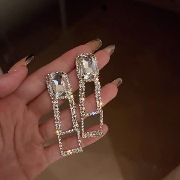 The main stone is a round white rhinestone with crystal secondary stones, all set in a silver alloy metal. These tassel earrings from Han brand are perfect for adding a touch of sophistication to any outfit.