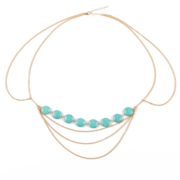 Multi tassel turquoise stone waist chains