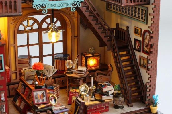 This book nook kit is made of premium wood, paper, and ABS material, which is sturdy, burr-free, and safe to use. With fine craftsmanship, the wooden puzzle parts are cut precisely which is easy to fit together. The miniature books, decorations, and furniture are delicate and realistic.