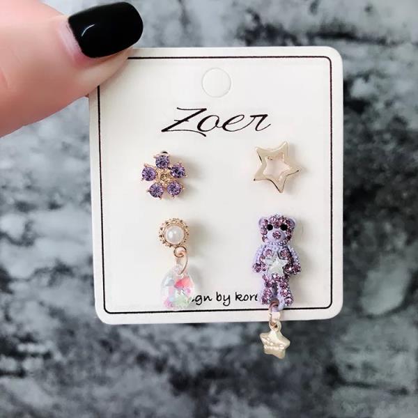 Made of alloy and adorned with pink and purple crystals, these earrings feature a cute bear design that will surely capture your heart.